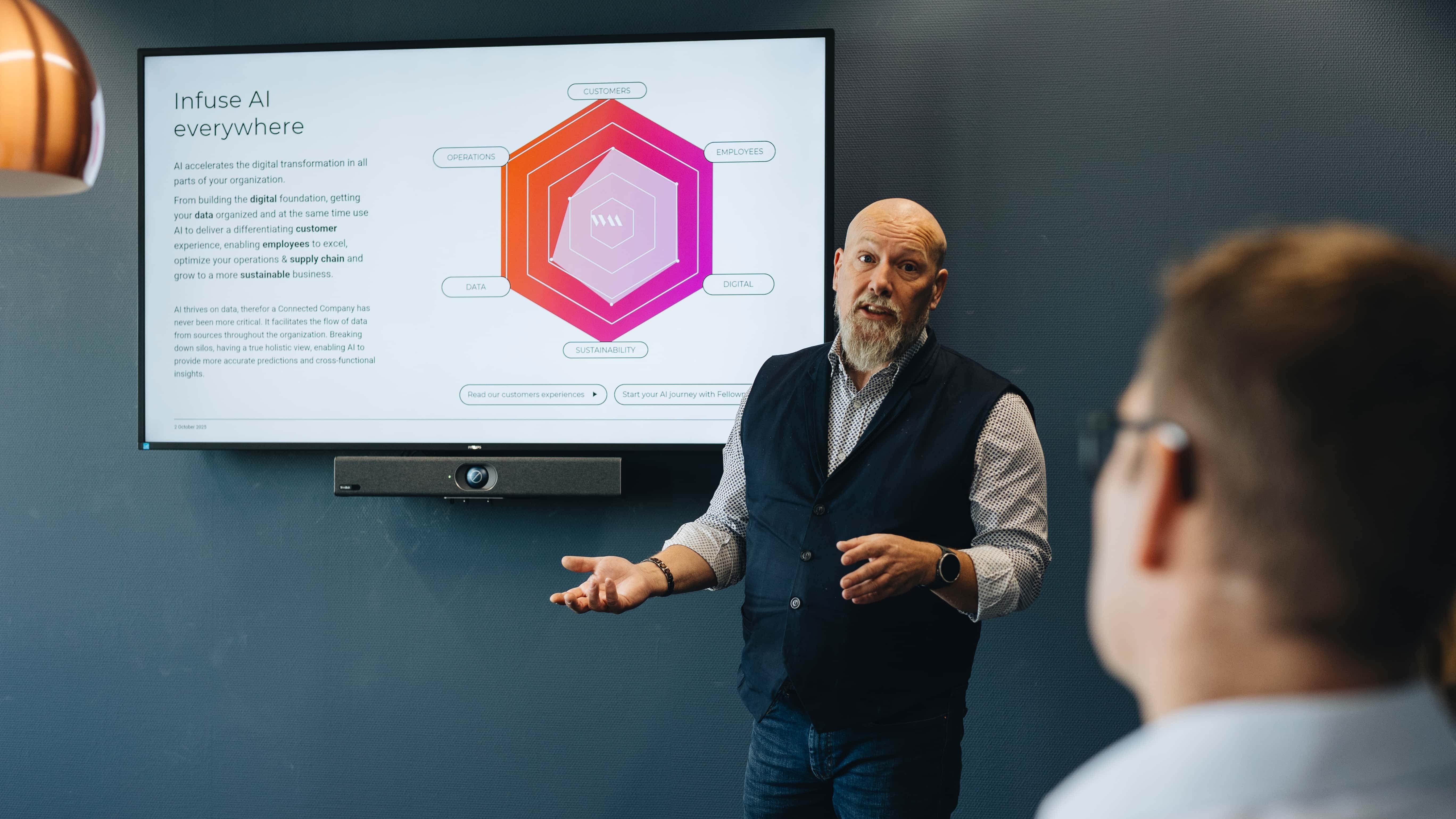 AI biedt geweldige kansen om slimmer te werken, processen te versterken en sneller de juiste beslissingen te nemen. Maar bij Fellowmind geloven we dat AI gebruik nooit een doel op zich mag zijn. Het is een middel om jouw mensen te helpen doen waar zij het verschil maken.