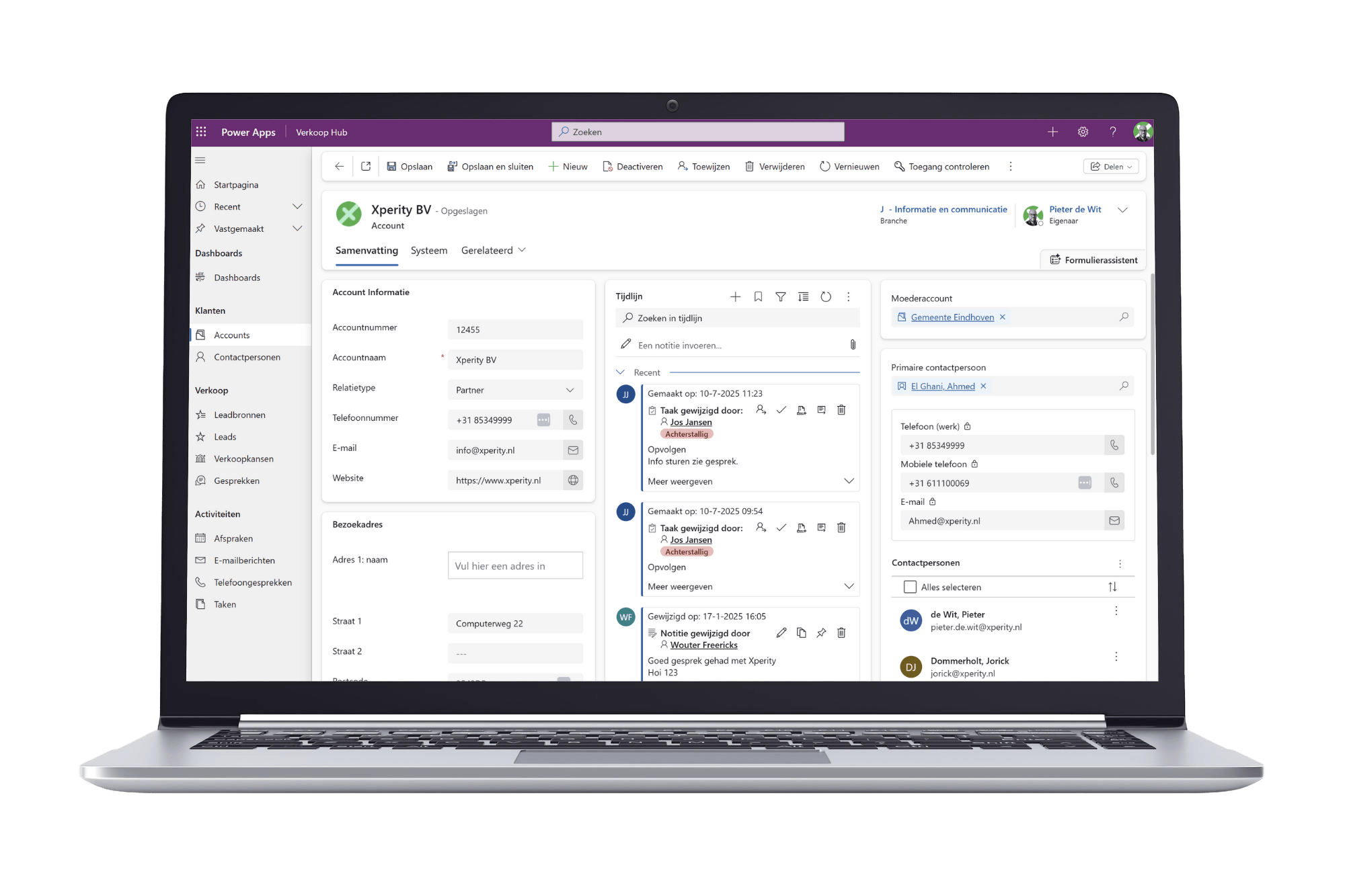 XSales is een totaaloplossing voor al jouw relaties, contactmomenten en verkoopkansen. XSales is een CRM-oplossing geïnspireerd door Microsoft Dynamics 365 Sales. Het biedt je de mogelijkheid om op een gestructureerde wijze jouw salesproces vorm te geven en alle sales- en klantinformatie bij elkaar te brengen op één plek. Bovendien kun je binnen XSales je verkoopdata realtime weergeven in visuele dashboards. Zo krijg je duidelijk inzicht in de verkoopkansen en pijplijn.